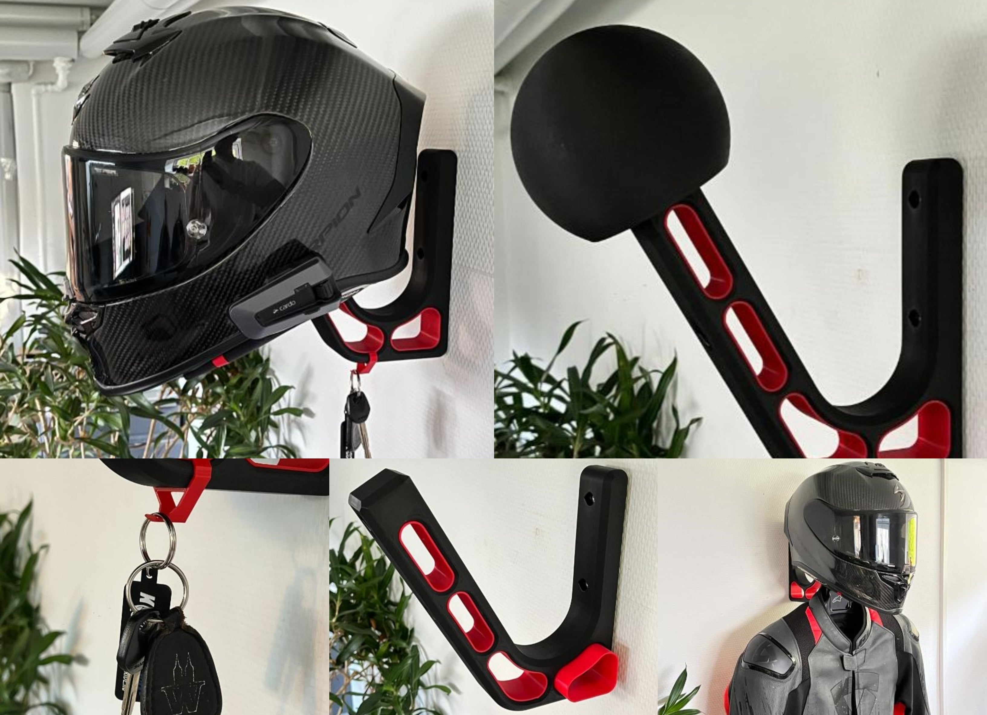 Este suporte de capacete inovador não se limita a segurar capacetes. Ele pode ser utilizado como suporte para chaves, casacos e também para armazenar diversos outros itens. Com um design multifuncional, é uma adição indispensável para qualquer casa ou escritório.